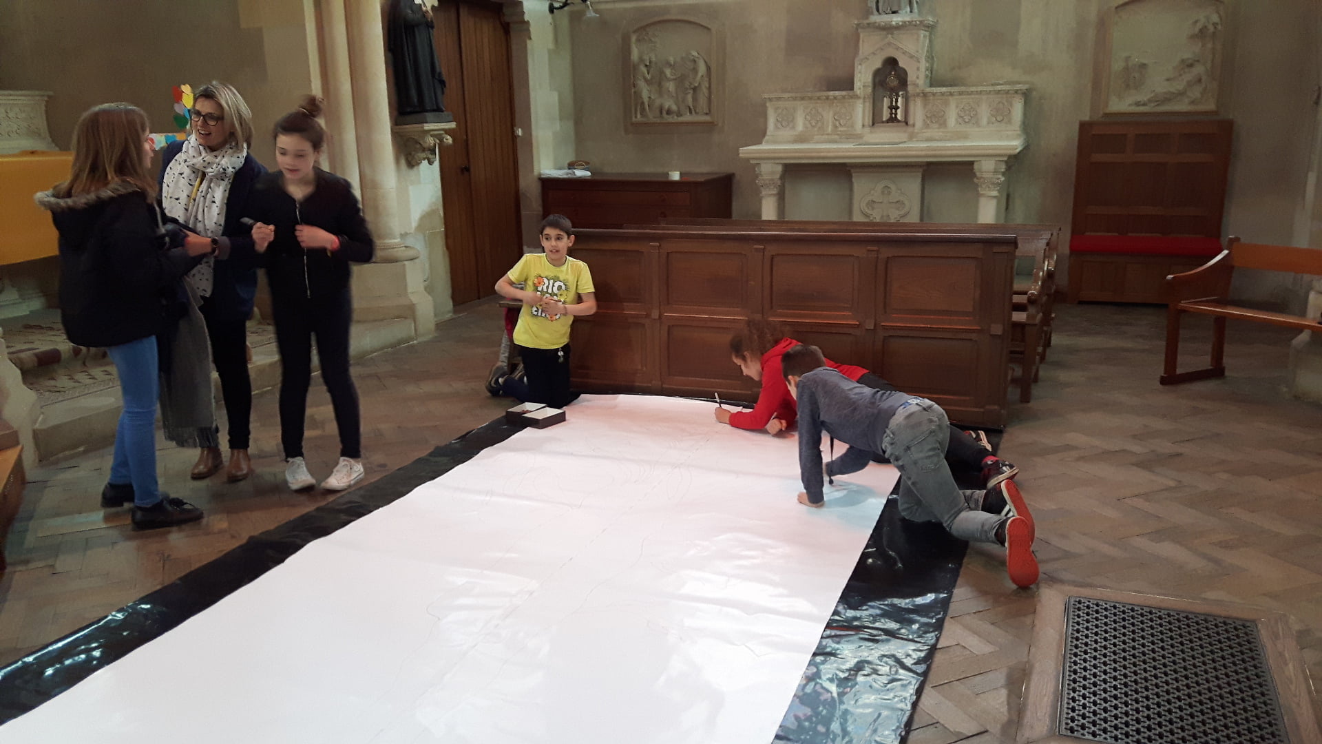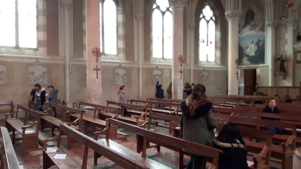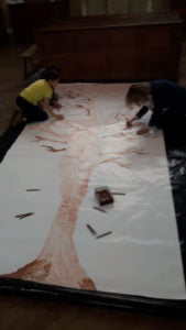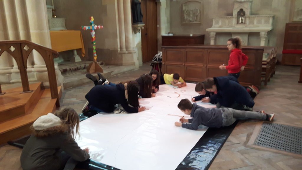Après le repas de midi ceux qui le souhaitaient pouvaient se rendre dans la chapelle pour une découverte du chemin de croix. Un temps de prière et le dessin d’un grand arbre (qui nous servira lors de la célébration de Pâques le 10 avril) leur a été proposé. Et tout ça dans la joie.