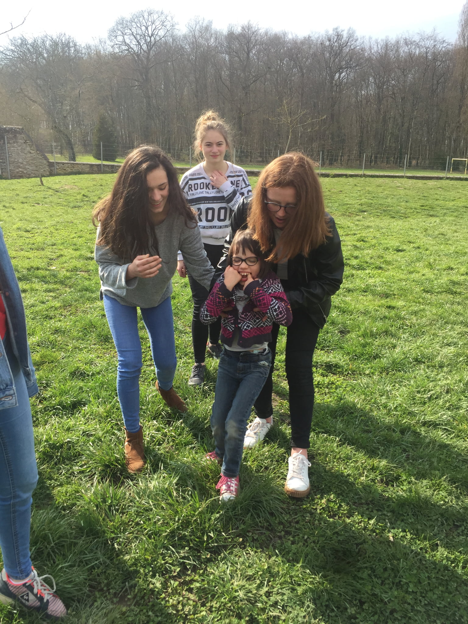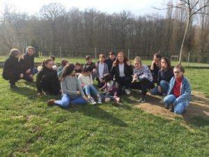 L’idée était de mobiliser les collégiens autour de Jeanne.Cet après-midi, nous avons donc rencontré 15 élèves de 5ème (leurs camarades étant aux sports d’hiver). Après une visite du collège (ils ont des terrains immenses, un bois, des chevaux, des poules et même un paon), nous avons beaucoup discuté sur Jeanne. Les collégiens ont été très curieux, très intéressés et le tout sans tabou !!! Puis nous avons fait un petit cours de musique, ce qui a beaucoup plus à Jeanne. Enfin nous sommes allés dehors faire une petite photo de groupe.