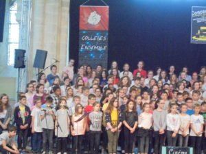 Sous la direction de leur chef de choeur, plus de 200 collégiens ont pu durant tout l’après midi répéter les chants dont le thème était le cinéma: (Sister Act, Harry Potter, Marry Poppins, 1492, les choristes …) un beau programme mené par Madame Lepagneul professeur d’éducation musicale et de chant choral du collège.