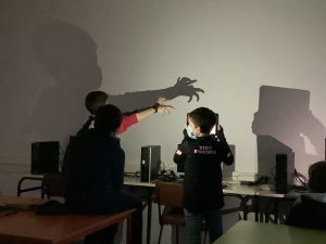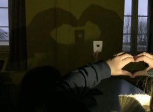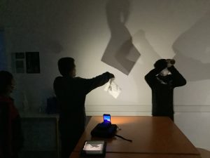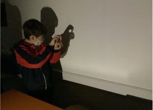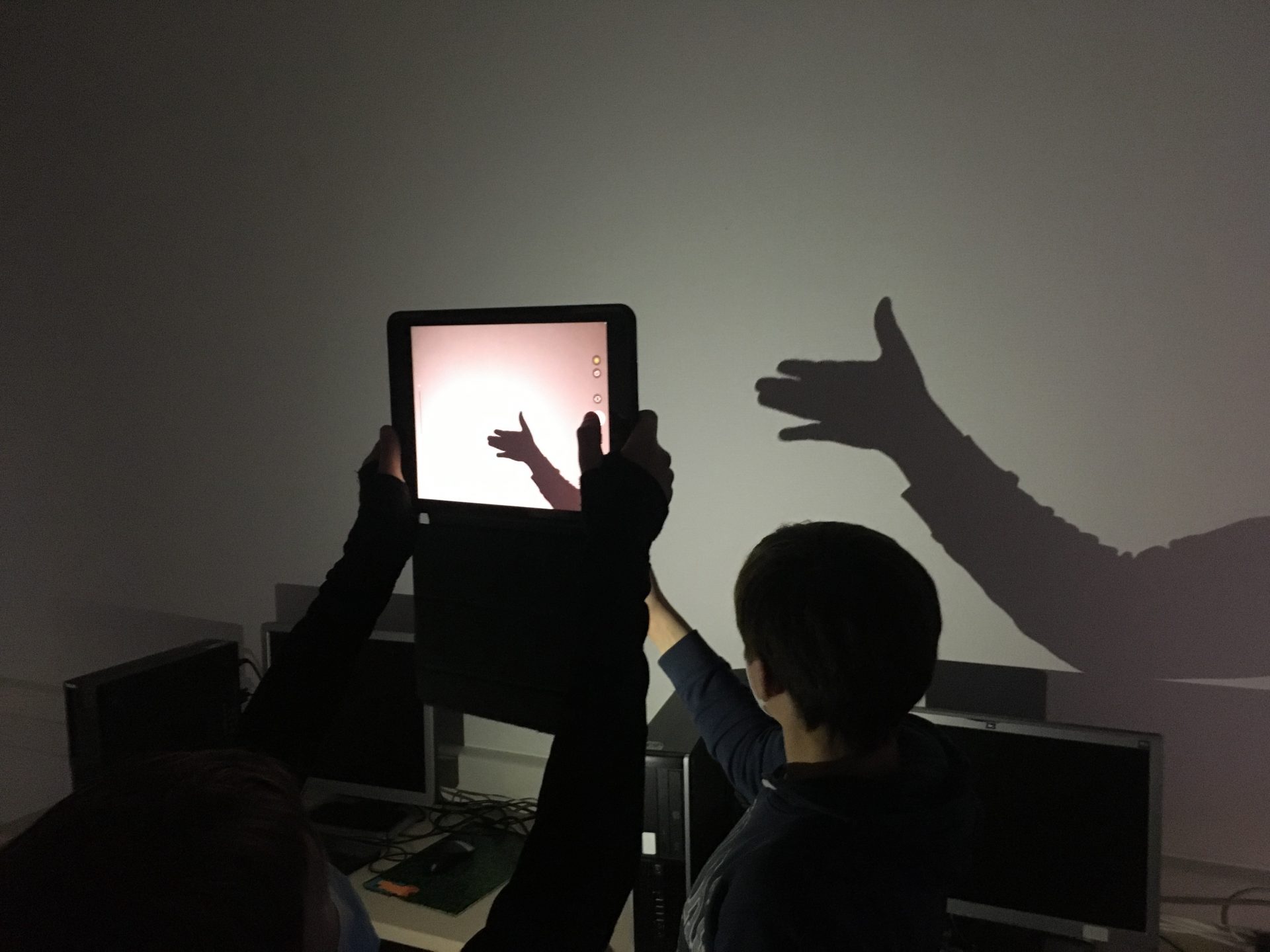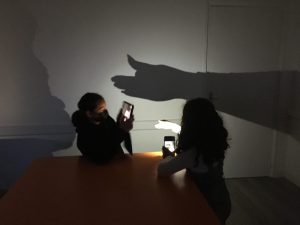 En cours d’arts plastiques, la classe de 6F a pu expérimenter un travail d’ombre et de lumière…en créant des formes et leurs ombres portées sur les murs de la classe à l’aide de lampes torche, le tout photographié avec les Ipads…