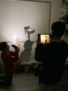 Bravo à eux pour leur ingéniosité ! Ombres réalisées à l’aide de leurs mains, divers objets et papiers découpés…