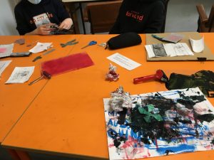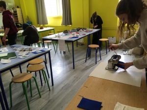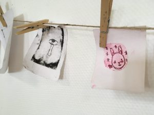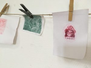- Expérimentation de la gravure Tetra Pak [Récupération de briques tetra pak, dessinées, gravées, encrées puis passées sous presse…]