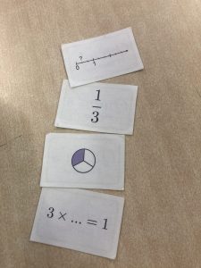 Dans le cadre des « ateliers maths » de chaque début de semaine (cours de maths en co-animation) , les élèves de 6ème ont réalisé un MÉMO des fractions, dans le but de représenter sous différentes formes : 10 fractions. Représentation sur une droite graduée, fraction partagée dans un disque, écriture décimale….
