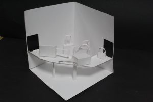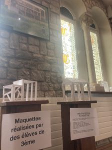 En accompagnement de l’expo de photographies du CAUE, les maquettes réalisées par des élèves de 3eme lors des cours d’arts plastiques ont été exposées dans la galerie. Quelques vues de ces maquettes « pleines de vide » fabriquées par binômes, en papier blanc uniquement.