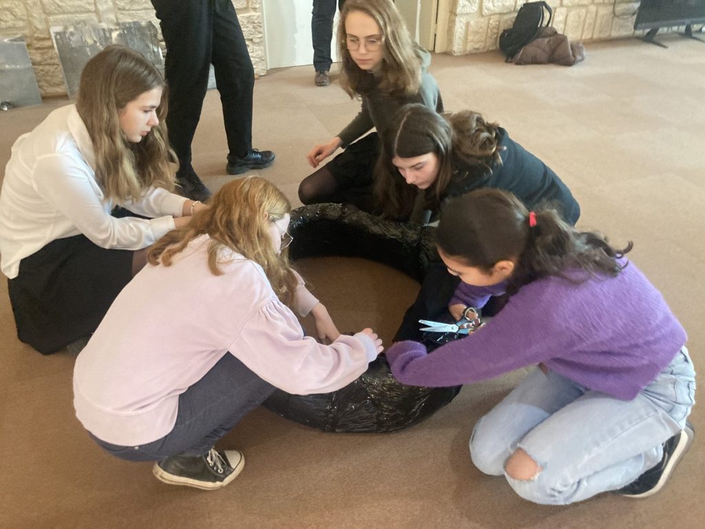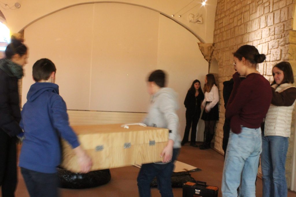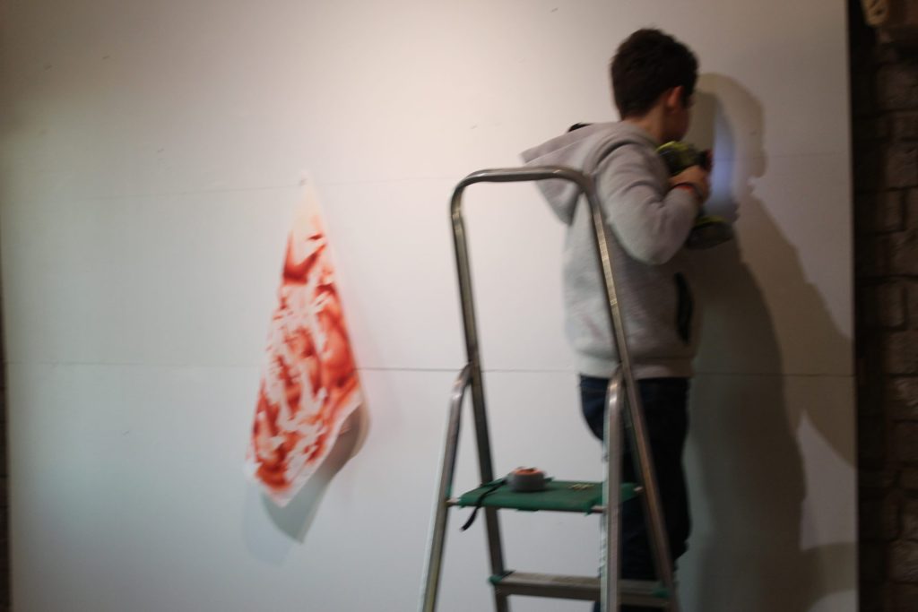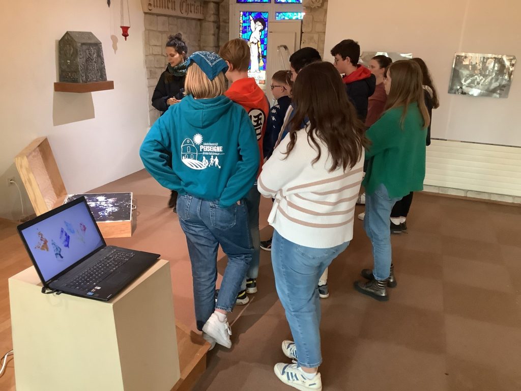 Vendredi 13 janvier, l’artiste a fait l’accrochage de ses œuvres avec les élèves du ‘Parcours renforcé arts plastiques’ composé de 18 élèves de 4e 3e, puis à rencontré une classe de 4e et des élèves du dispositif Ulis.