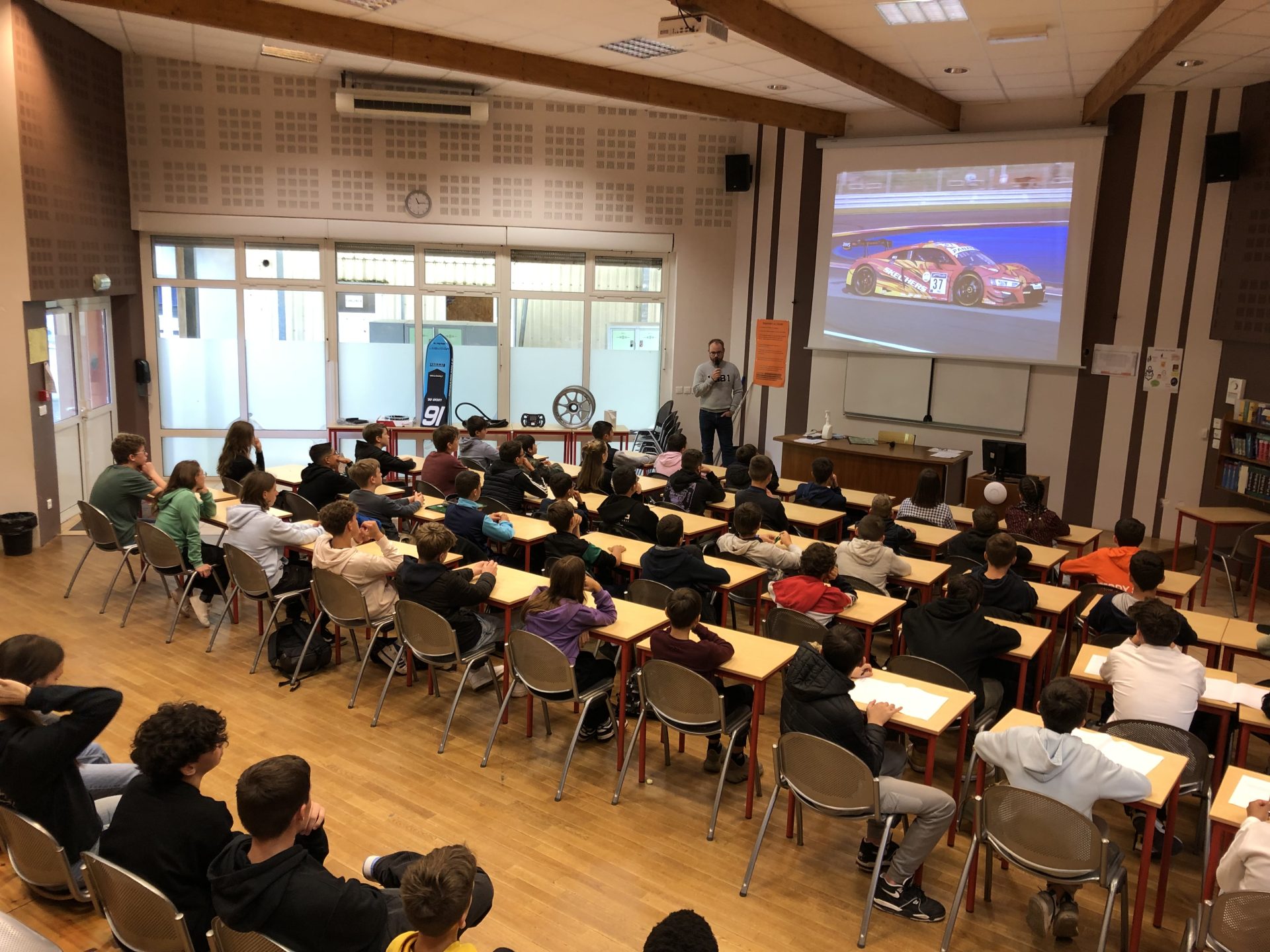 Nous avons pu accueillir Jeudi 19 octobre 2023, Mr Lainé, mécanicien indépendant en endurance automobile mais aussi en F2 avec l’écurie DAMS, dans le cadre de la fête de la Science pour le thème « Sciences et Sports».