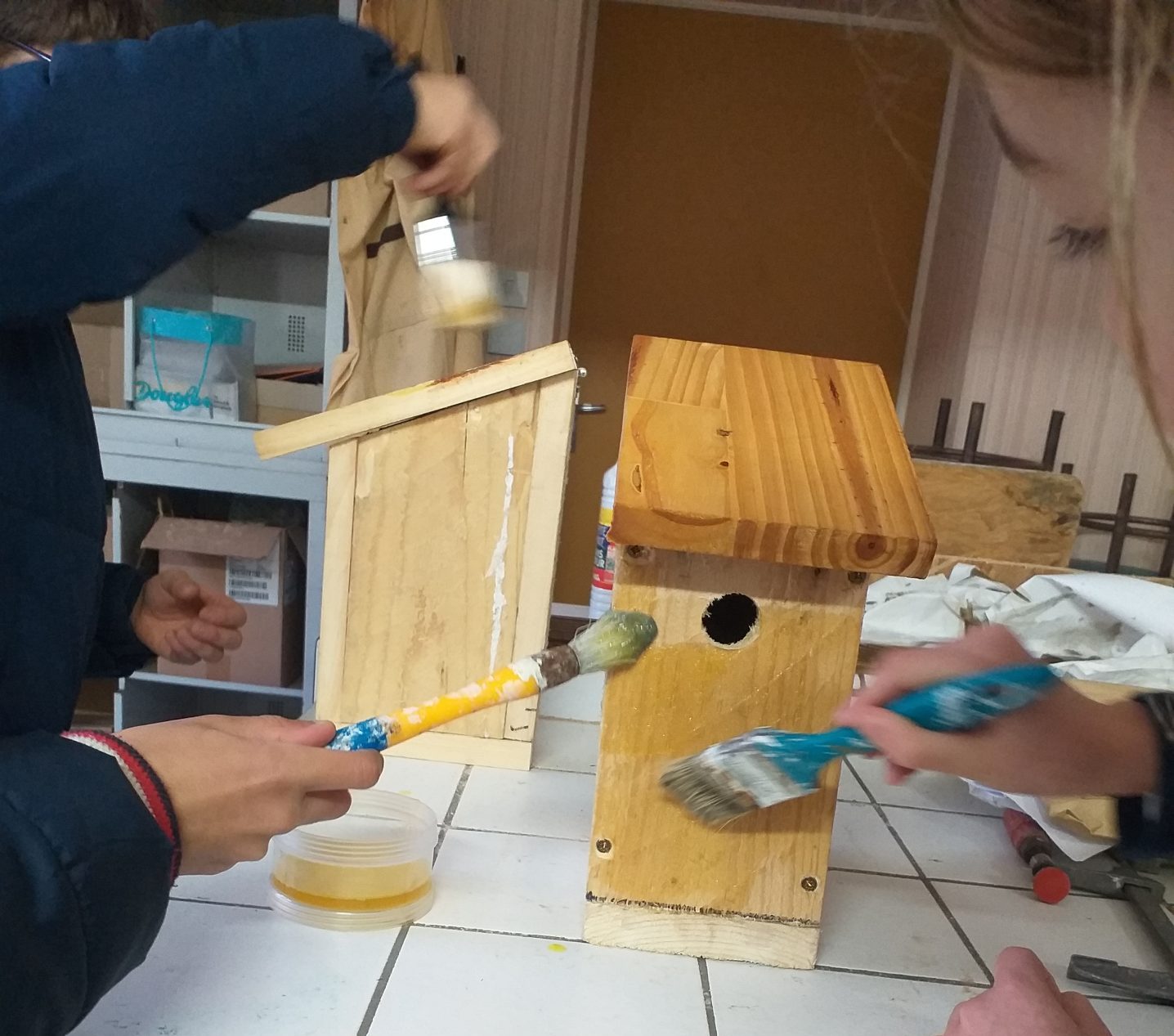 Le club Vigie Nature, se réunit le vendredi avec une dizaine d’élèves de 6ème et 5ème, découvrez en photos, l’assemblage de nichoirs avec l’ajout d’une couche d’huile de lin pour protection.
