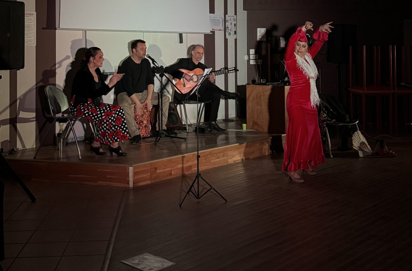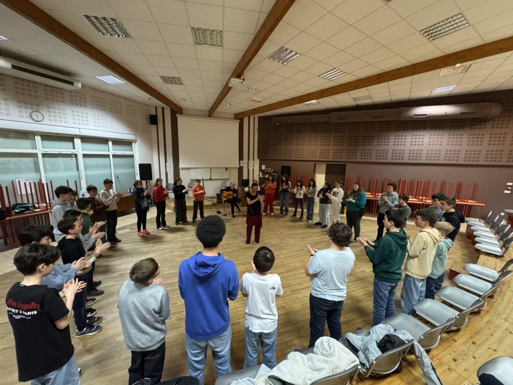 Le 4 mars dernier, tous les élèves de 5ème du collège ont accueilli la « Peña Tacón ». Dans un premier temps, ils ont pu assister au spectacle « Flamenco en vivo » lors duquel les membres de la troupe ont expliqué à travers des danses et des chants, l’histoire du flamenco depuis son origine jusqu’à nos jours. Puis, dans un deuxième temps, par petits groupes, ils ont participé à un atelier pour apprendre les bases de cette danse, les différentes façons de taper dans les mains pour créer un rythme et des sons plus ou moins forts, les pas de danses et ils ont même pu apprendre une chorégraphie. Les élèves ont beaucoup apprécié l’intervention et étaient fiers d’avoir réussi à arriver au bout de la chorégraphie. Cette intervention qui rentre dans le cadre d’un travail interdisciplinaire a permis aux élèves de travailler la musique, l’EPS et l’espagnol. Cette expérience a permis aux élèves de percevoir de manière concrète une réalité hispanique dont ils n’avaient que quelques notions plutôt théoriques. Mme Berasategui pour l’équipe d’espagnol