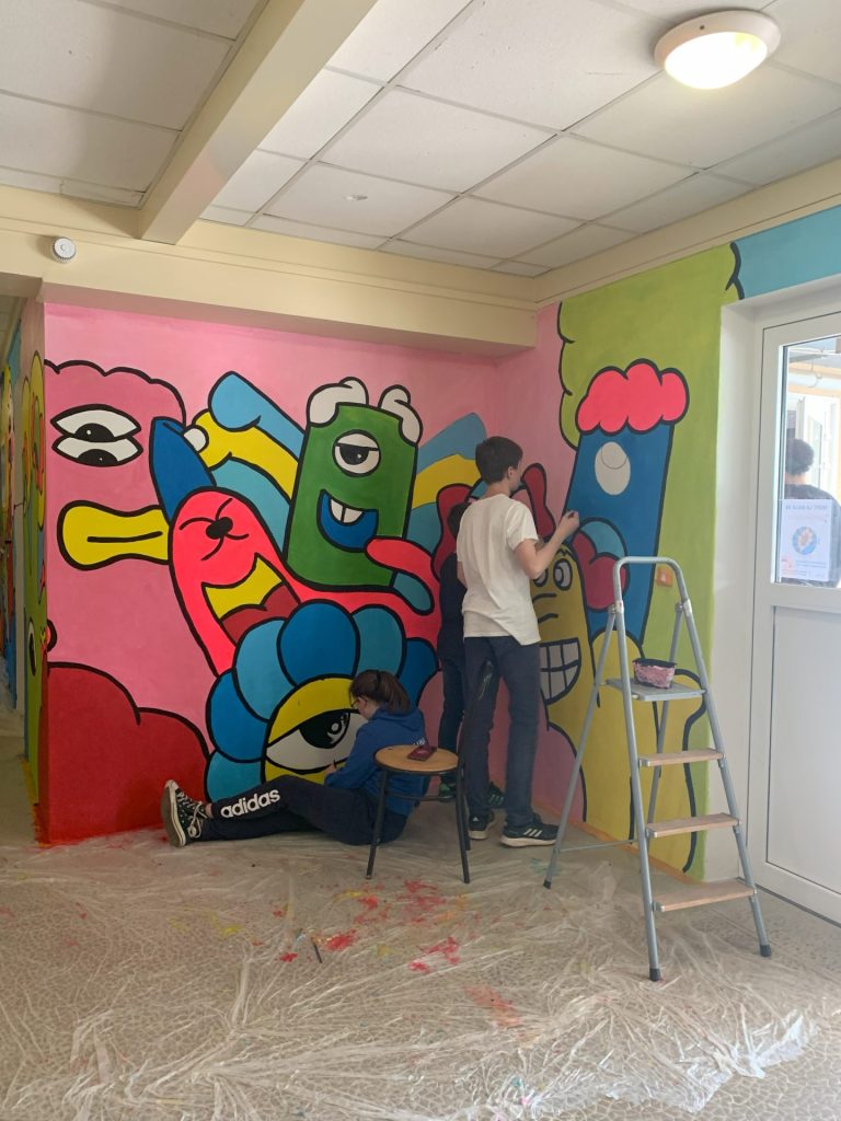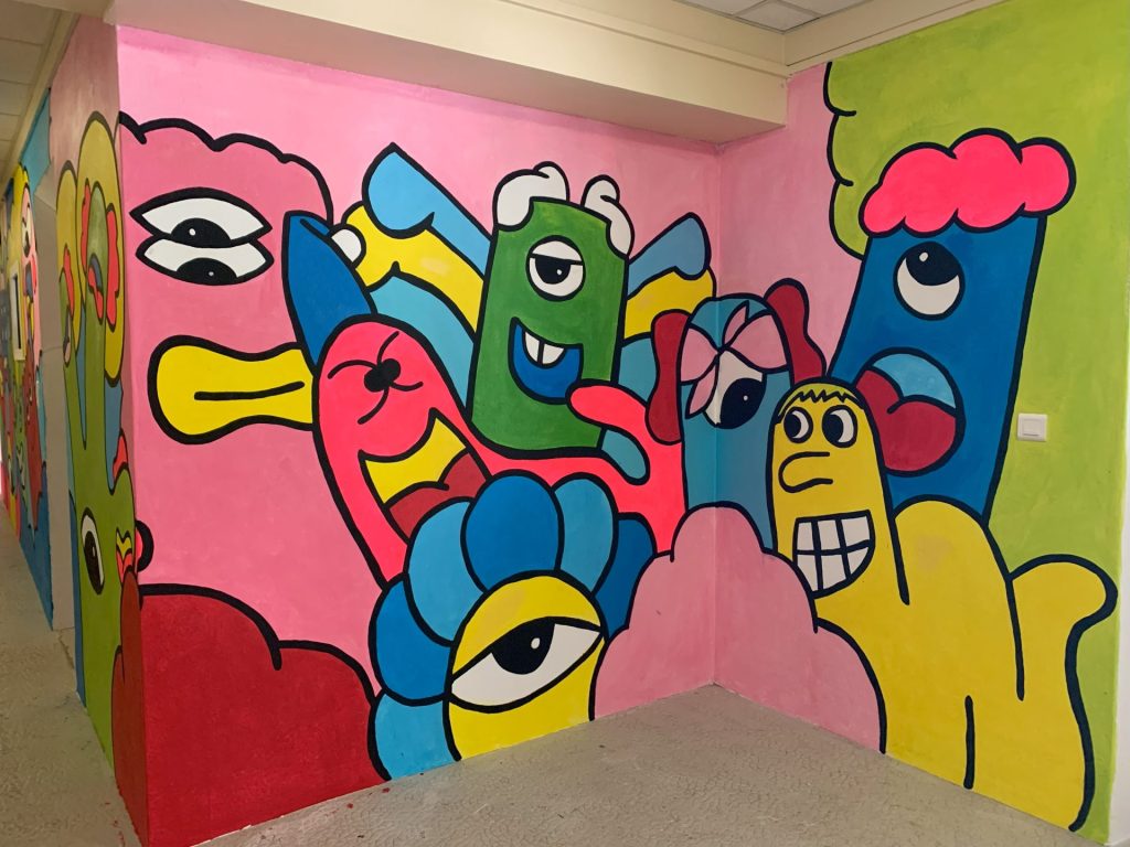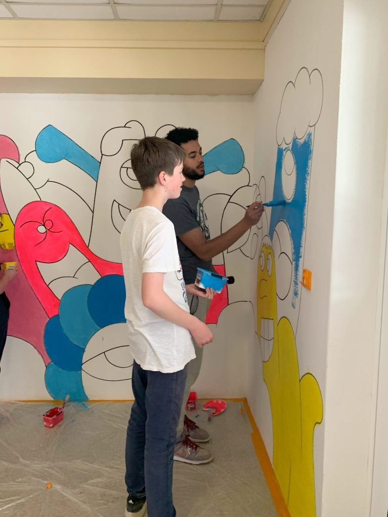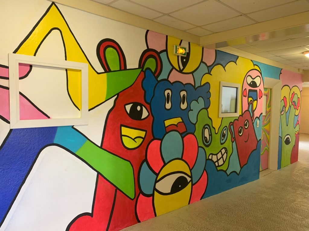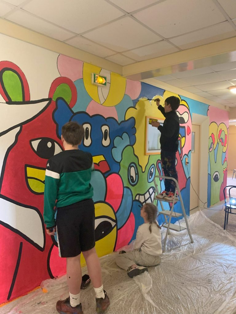 La reprise est faite, nous pouvons désormais vous dévoiler la fresque haute en couleurs réalisée par dix élèves volontaires durant les vacances de Printemps.