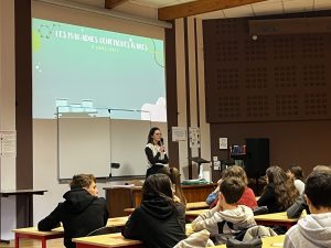 Elle a également consacré un temps important à partager son parcours professionnel, les métiers de la recherche et les formations nécessaires, dans le cadre du Parcours Avenir. Les élèves ont pu poser des questions et mieux comprendre les opportunités qu’offre le monde scientifique.