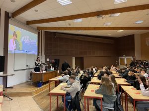 Lors de sa présentation, Elise Lachiver a abordé plusieurs thèmes passionnants : des notions de génétique liées à certaines maladies, les thérapies géniques possibles, ainsi que les perspectives de traitement pour les maladies rares. Les élèves ont ainsi pu découvrir concrètement l’impact de la recherche scientifique sur la santé.