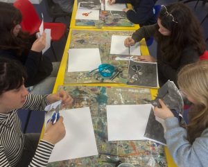 L’après-midi, les élèves se sont rendus à la Visitation pour visiter le FIAA (Fonds International d’Art Actuel). Ils ont découvert l’exposition temporaire de Yoann Merienne lors d’une visite guidée, suivie d’un atelier de pratique artistique.